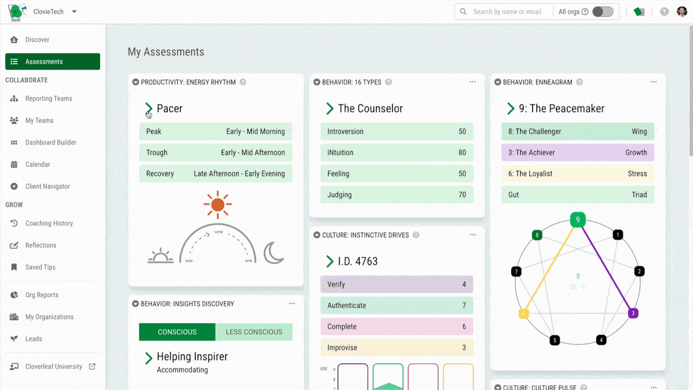 Cloverleaf is the only platform that brings assessment, coaching, and culture data together.