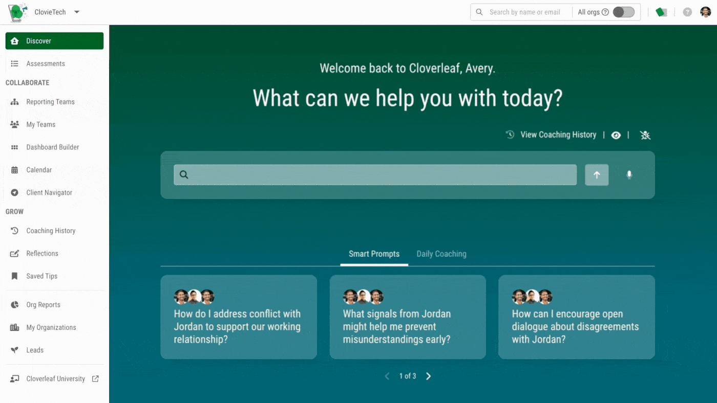 Cloverleaf unites science backed assessment and talent insights in one AI coaching platform so cross-functional teams communicate better, adapt faster, and deliver results.