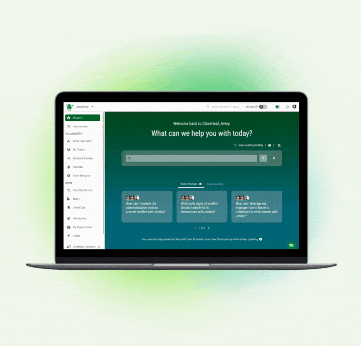 It goes beyond coaching. Cloverleaf combines assessments, coaching nudges, and culture insights into one workflow so HR can scale development without adding more tech or headcount.