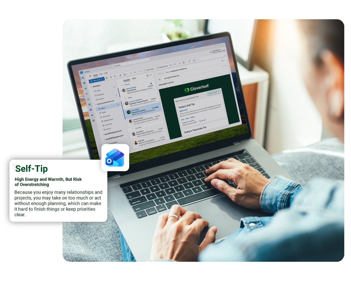 Cloverleaf delivers coaching each weekday based on who you work with most. Repeated exposure to insights about yourself and teammates builds habits over time. Daily reinforcement helps managers apply assessment insights consistently, not just when they remember to log into a platform.