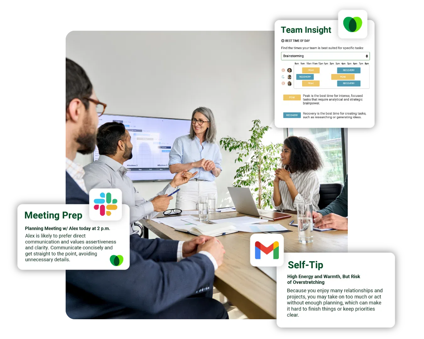 Cloverleaf coaching accounts for each person’s communication style, work preferences, and team context using DISC, CliftonStrengths®, and other behavioral assessments.